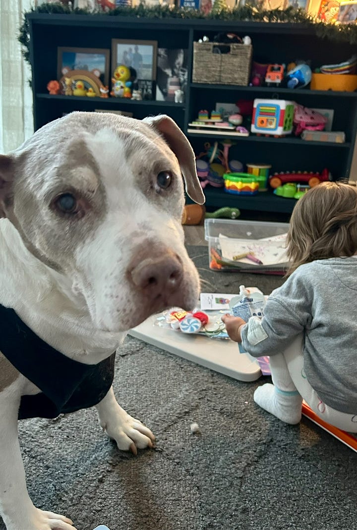 Over the span of a past few months, I found myself in the position of caregiver. Changing dressings nightly, administering medication daily, guiding him up and down the flights of stairs in our home, washing his wet beds and couch covers. At times it became overwhelming and I found myself losing patience, becoming unraveled at the stresses or taking care of a senior dog as well as a human toddler who is on the opposite spectrum of where he is, full of energy and life.