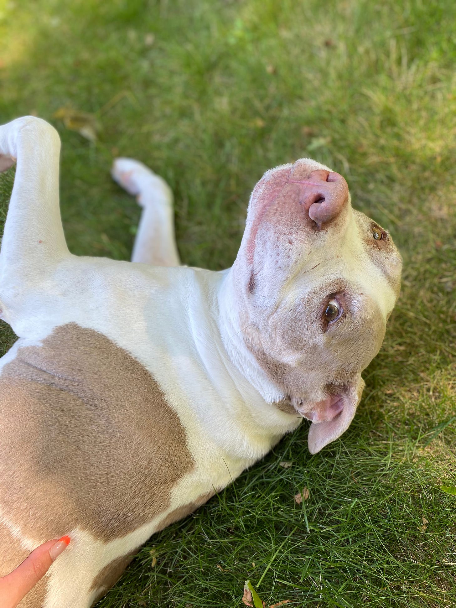 The first time I took him to the vet, someone who years later I would call consider family and one of his angels, I laid on the floor with him as she told me based on his scars and lack of teeth, she thought he may have been a bait dog, the one that had the bad things happen to him, but when I tell you his past did not stop that boy from loving with his whole block head and murmur ladden heart…